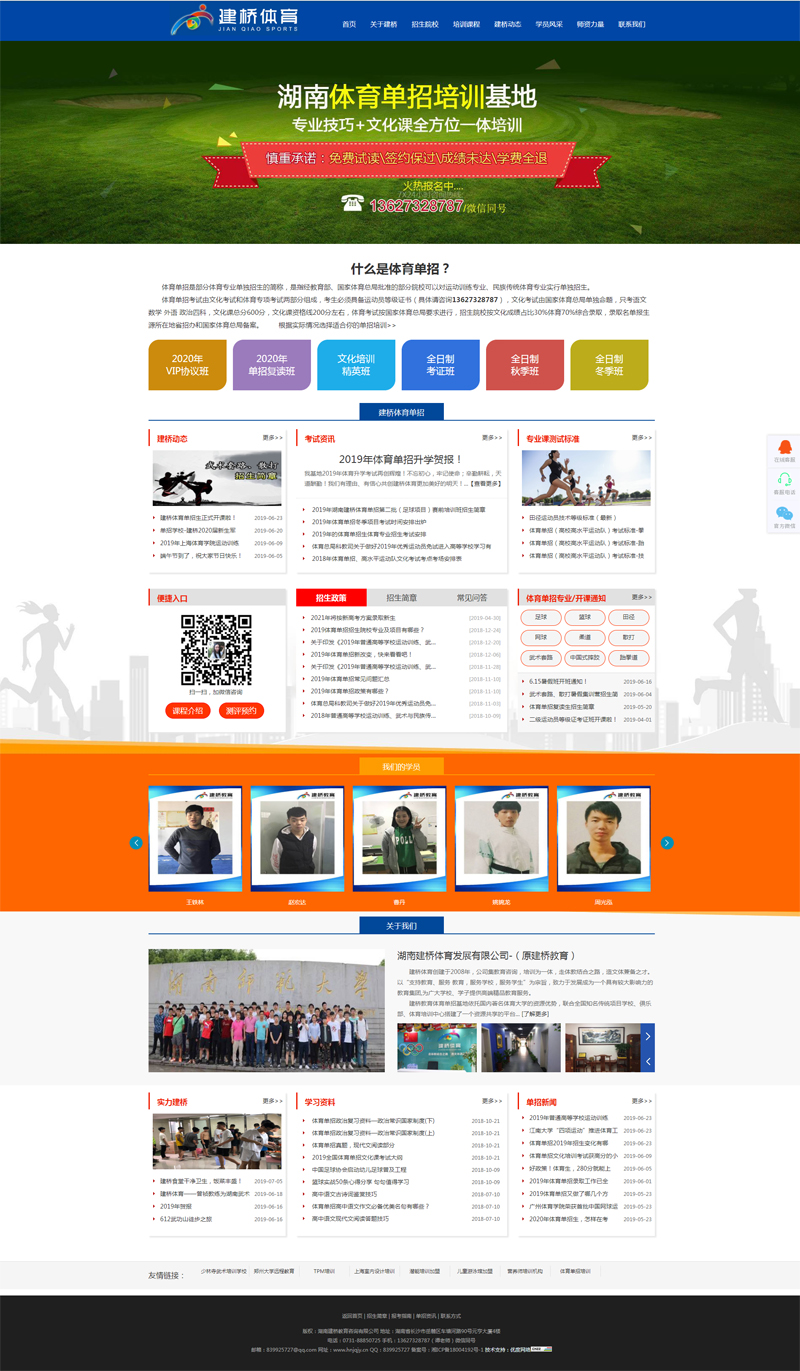 建桥体育单招是属于一种教育类的网站,宣传体育特长生单招上本科的培训机构,此网站采用营销型建站模式,网站围绕单招主题,充份体现公司的规模,招生的性质及考试资讯,结合熊掌号,排名一直非常稳定。