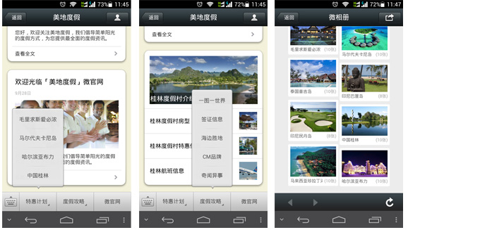 微官网是指将企业信息、服务、活动等内容通过微信网页的方式进行表现,用户只要通过简单的设置,就能快速生成属于您自己的微信3G网站,并且有各种精美模板,供您选择,还有自定义模版,可以设计出自己的风格,不但提高了信息量,也使信息的展现更加赏心悦目,进一步提高用户体验。