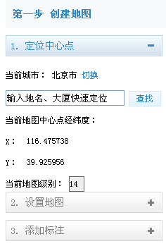 进入地图快速生成器后,看左侧,点开第一个按钮有个定位中心点。切换您想要标记的城市及详细位置,点查找,右侧的地图就会根据你所输入的名字发生变化,再用鼠标滚动放大放小,定位到你的具体位置。定位好了之后,选择“添加标注”图标,在右侧的地图上写上你的公司名称和简介,点“保存”。